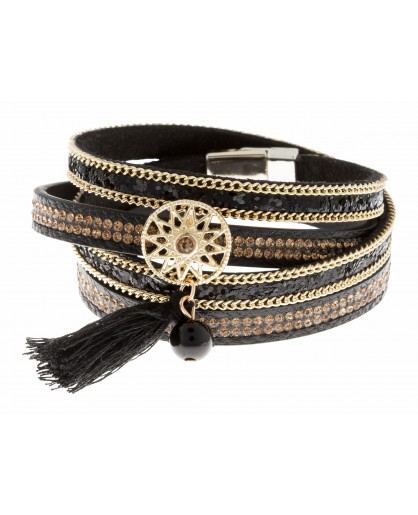 Un look qui me correspond bien, que j’adopterais sans hésiter avec le sac très original, le foulard à plumes un peu chic, le bracelet multi rangs et les pompons sur les sandales ! J’adore !