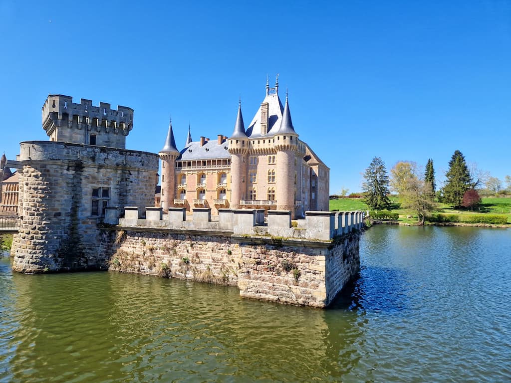Alors là, on touche au sublime ! La Clayette, c’est à 15 km de chez nous, et franchement, c’est l’un des sites les plus pittoresques de Bourgogne-Franche-Comté. Le château du 14ème siècle qui se reflète dans son lac, entouré d’eau… on dirait vraiment un décor de film.