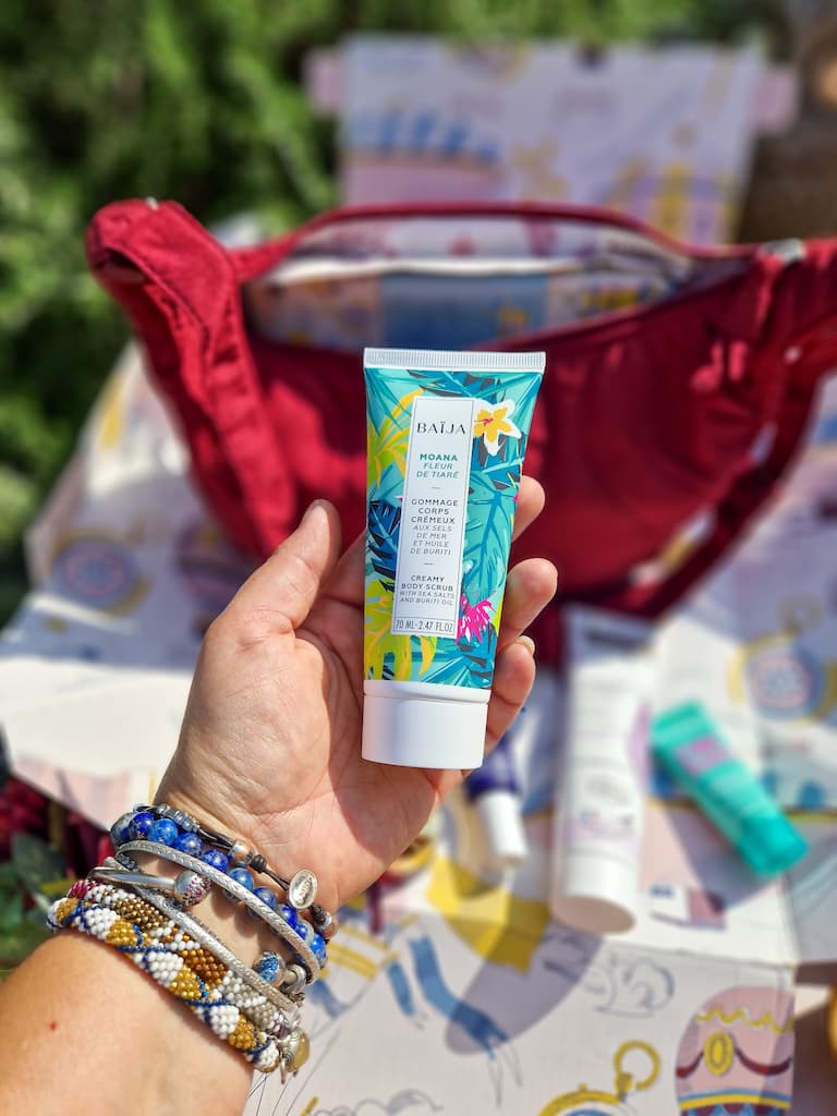 - Baïja – Gommage Moana : son parfum solaire nous garde encore un peu en vacances, tout en prolongeant le bronzage.