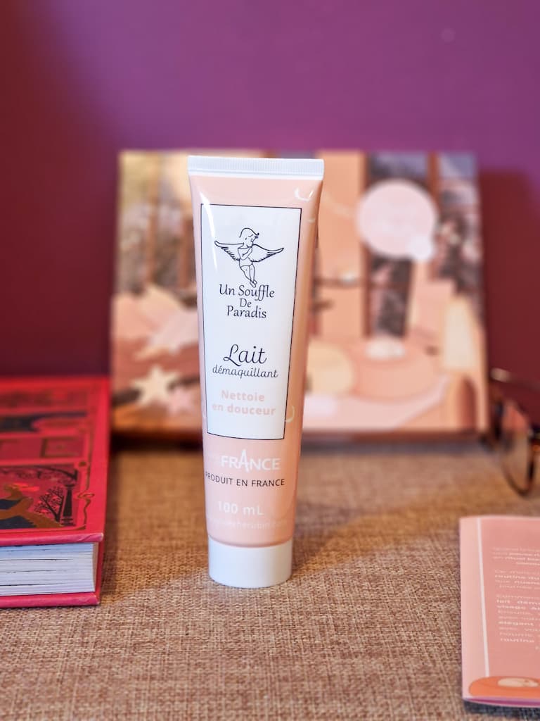 Premier geste cocooning de la routine Sweet Night Pink par la box beauté Glowria : le Lait Démaquillant Soyeux Un Souffle de Paradis.