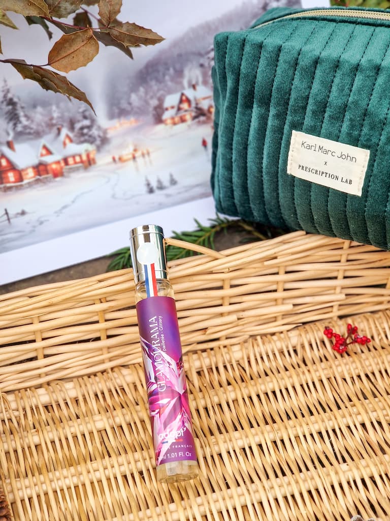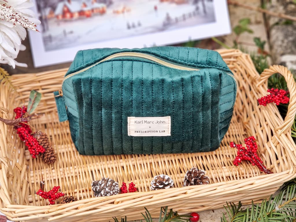 Présentée dans une somptueuse trousse vert émeraude signée Karl Marc John, cette box nous transporte dans un univers chaleureux et sophistiqué, où textures velours, parfums gourmands et soins d’exception se rencontrent. 💎