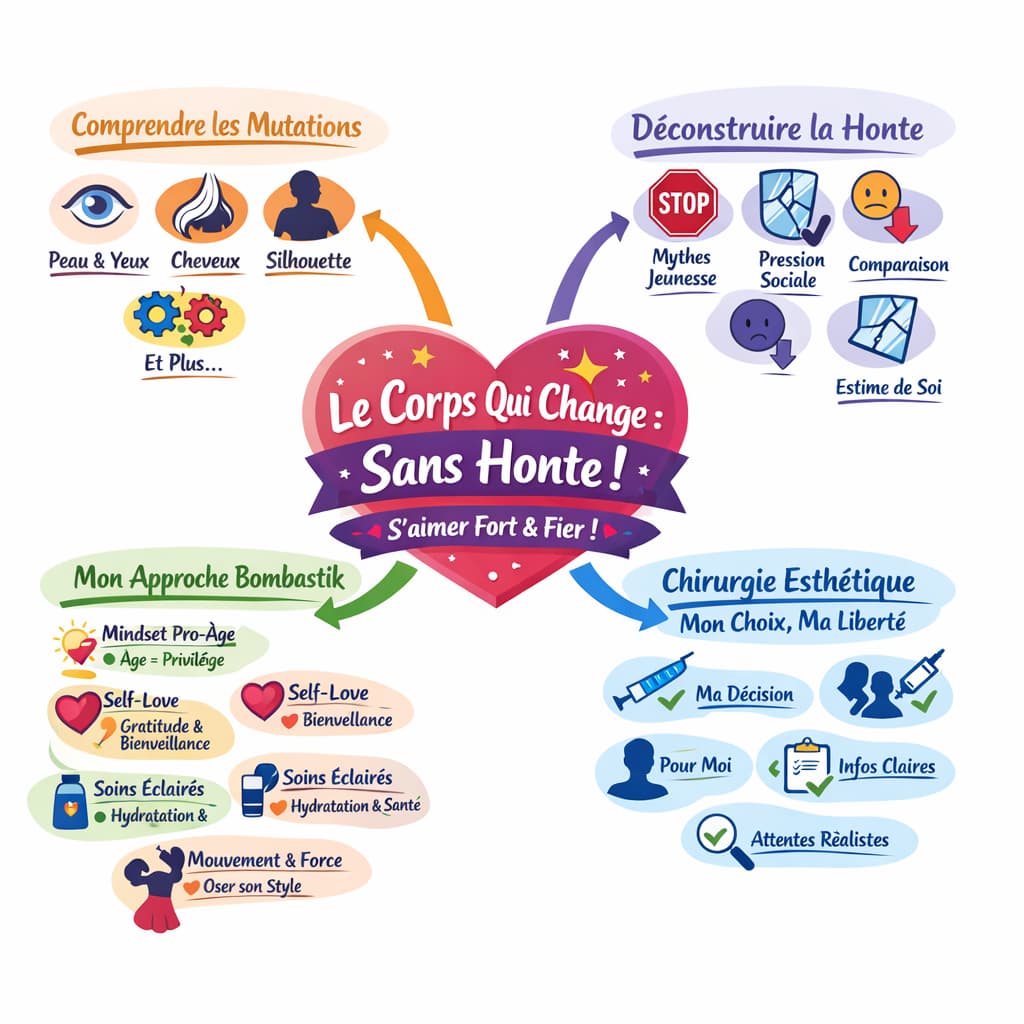 Pourtant, et si ces changements, loin d’être des marques d’un déclin inévitable, étaient plutôt les chapitres d’un livre fascinant, celui de votre vie ? Et si l’on décidait, ici et maintenant, de balayer la honte pour embrasser cette nouvelle version de nous-mêmes avec bienveillance, curiosité et une dose d’audace toute bombastik ? Préparez votre boisson préférée, on plonge ensemble au cœur de cette belle aventure qu’est le corps qui évolue.