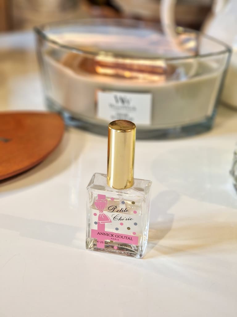 L’amour s’est aussi invité dans ma collection grâce à ma moitié, qui m’a offert Petite Chérie d’Annick Goutal. J’avais craqué pour sa note de poire juteuse absolument irrésistible.