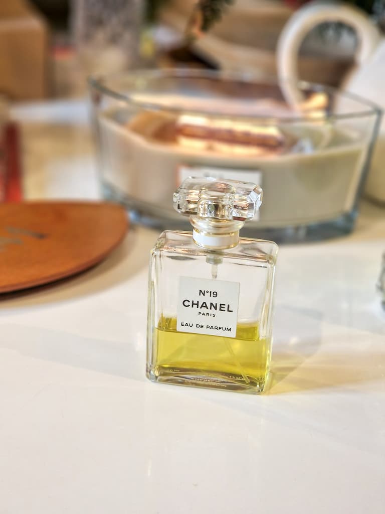 Pour ses moments plus chics, lors de nos balades à Deauville, Rouen ou Paris, elle portait le N°19 de Chanel. Un parfum audacieux, le dernier lancé par Gabrielle Chanel elle-même. C’est un mélange de notes vertes fusantes (le galbanum) et de poudré (l’iris). Il a du caractère, il est « classe » sans être ostentatoire.
