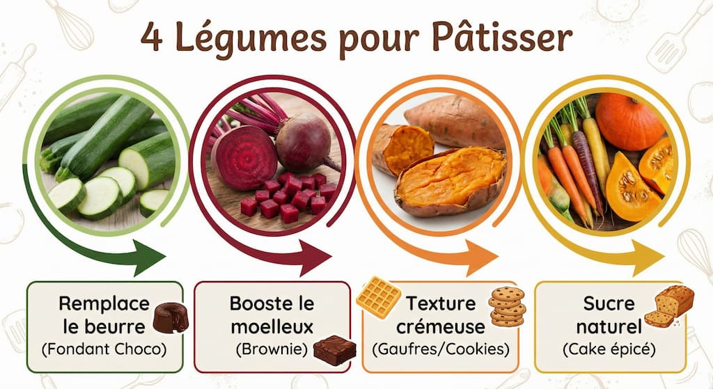 - Le moelleux extrême : les légumes sont gorgés d’eau et de fibres. Ils apportent une humidité incroyable à la pâte. Fini les gâteaux secs qui étouffent-chrétien !