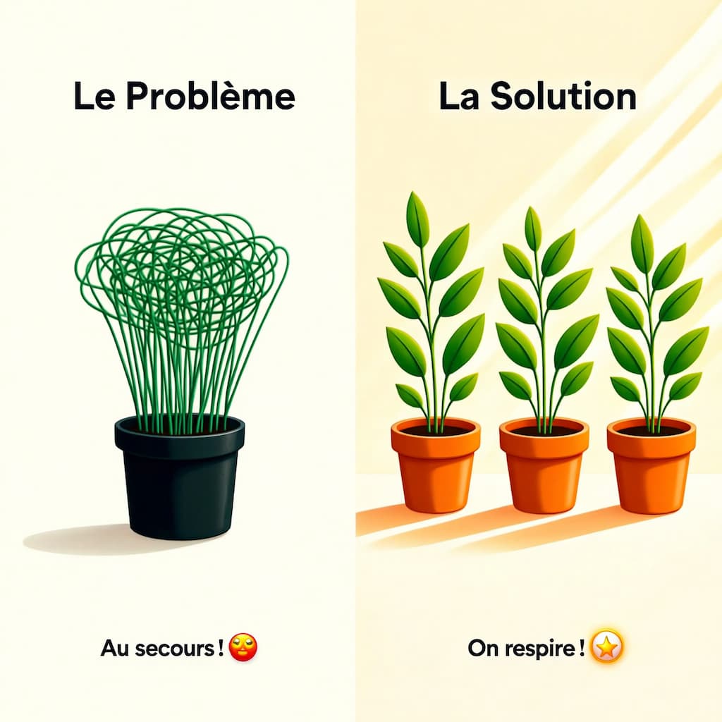 C’est la cause n°1 de mortalité du basilic. Quand vous achetez un pot au rayon frais, il a l’air magnifique car il est ultra-dense. Mais en réalité, les producteurs ont semé une trentaine de graines dans un pot minuscule pour que ça pousse vite et que ce soit joli en rayon.